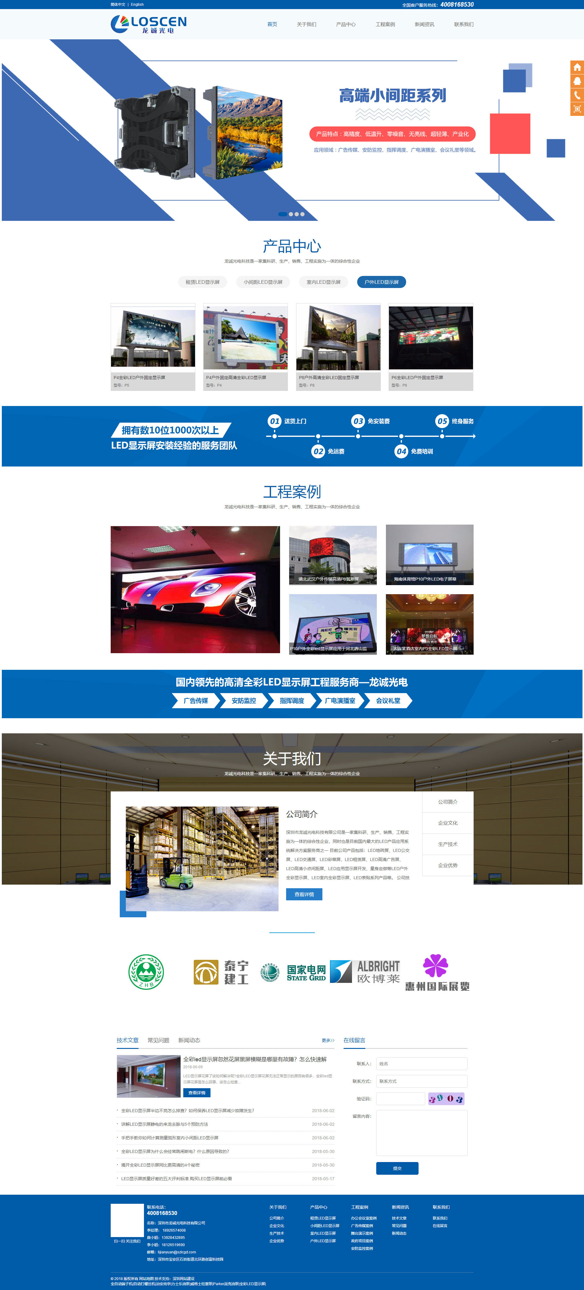 深圳市龍誠光電科技有限公司是客戶介紹客戶的,還沒進(jìn)行面談已經(jīng)選擇公明創(chuàng)絡(luò)科技公司進(jìn)行設(shè)計(jì),該網(wǎng)站采用是營(yíng)銷型風(fēng)格設(shè)計(jì),主要以科技藍(lán)為主,首頁頁面內(nèi)容豐富。是電腦板加手機(jī)版數(shù)據(jù)同步,集成在一起的網(wǎng)站后臺(tái)技術(shù),其中手機(jī)版是采用MIP技術(shù)。