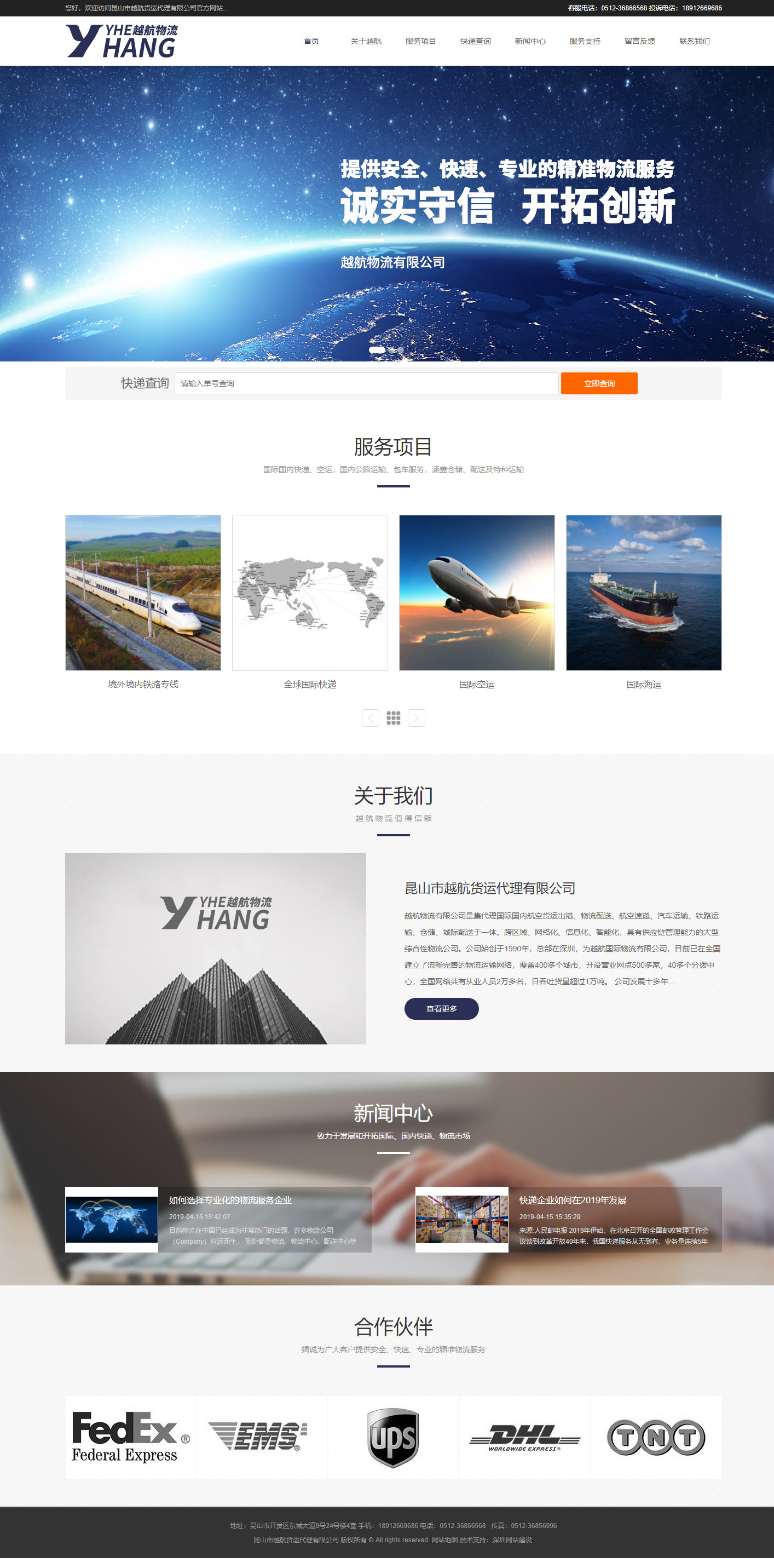 昆山市越航貨運代理有限公司是客戶介紹的一位外地企業(yè),所以在合作的時候已經(jīng)建立了信任基礎(chǔ),很快就與創(chuàng)絡(luò)科技網(wǎng)絡(luò)公司達成合作。該網(wǎng)站是一家做物流快遞的展示性風格網(wǎng)站。