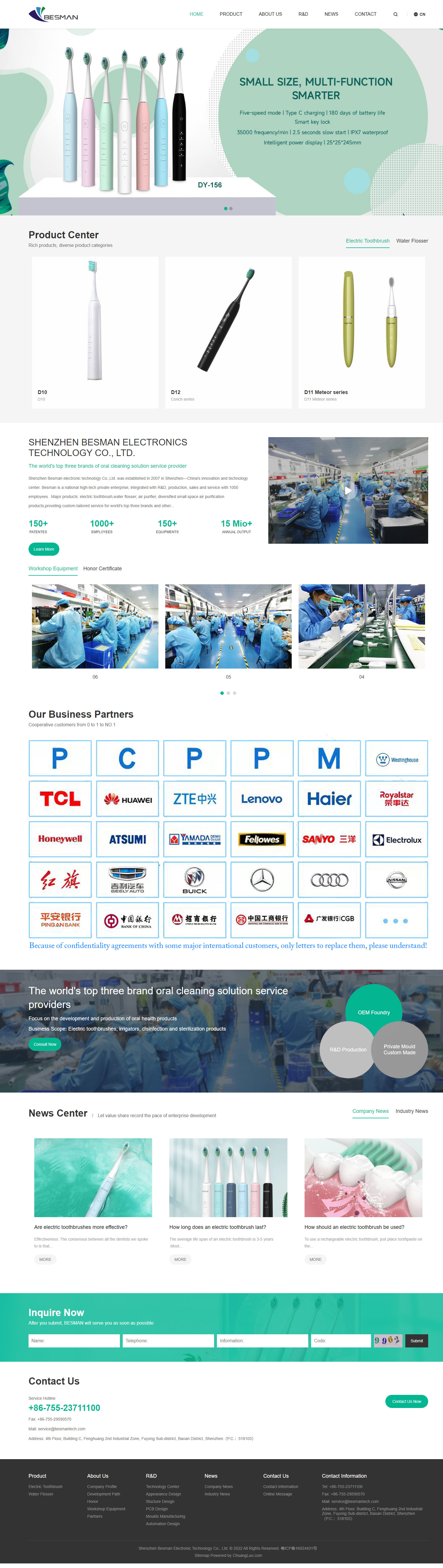 深圳市柏斯曼電子科技股份有限公司,2007年成立于中國(guó)創(chuàng)新科技之都---深圳,是一家集研發(fā)、生產(chǎn)、銷(xiāo)售、服務(wù)于一體的國(guó)家級(jí)高新科技企業(yè),2017年中國(guó)新三板上市,現(xiàn)有員工1100余人。主要產(chǎn)品:電動(dòng)牙刷、沖牙器、消毒殺菌產(chǎn)品, 為包括全球前三大品牌在內(nèi)的合作伙伴提供OEM、ODM、OTS 等口腔清潔類(lèi)產(chǎn)品定制服務(wù)