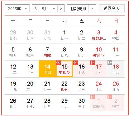 2015年創(chuàng)絡(luò)中秋節(jié)放假安排